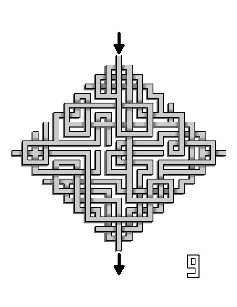 A weaving maze does exactly what it says in the title, the pathways weave over and under each other on the page. Solve the first 10 mazes below on the page, or download a complete book of all 20 weaving mazes at the bottom of the page ! While these are beginner weaving mazes, I have made larger and more complicated ones like: